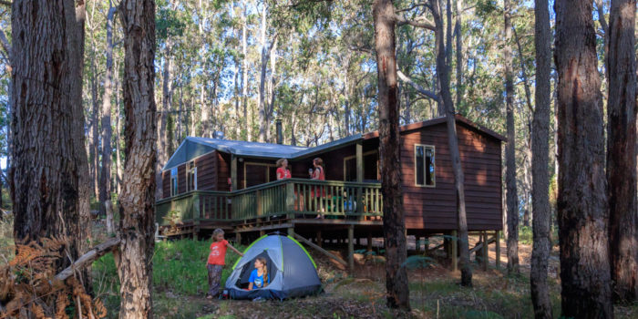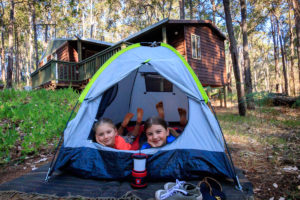 You want the luxury and tranquillity of a fully self-contained bush cottage . . . but you’ve been promising the kids the chance to ‘camp out’!